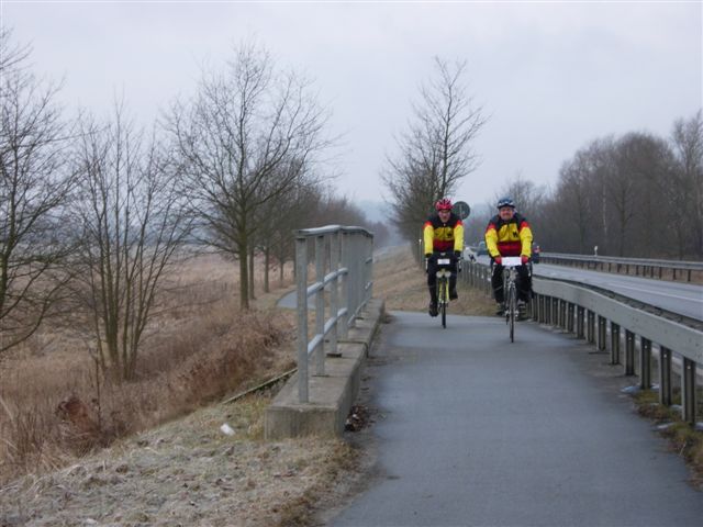 Auf den Radweg neben der B5 Richtung Boizenburg. v.L. Heino, Burkhard